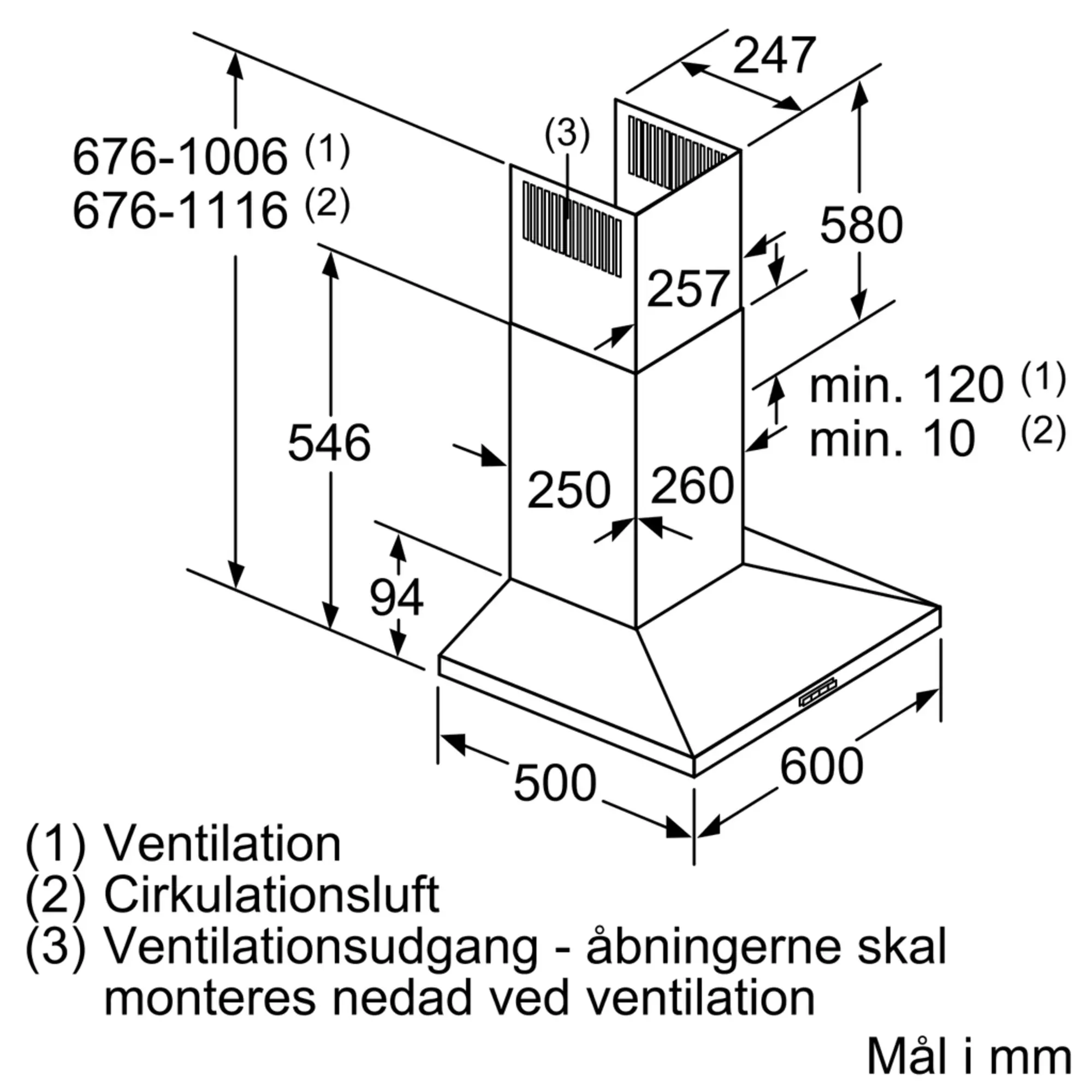 Aftræk / Recirkulation (tilbehør fås separat)