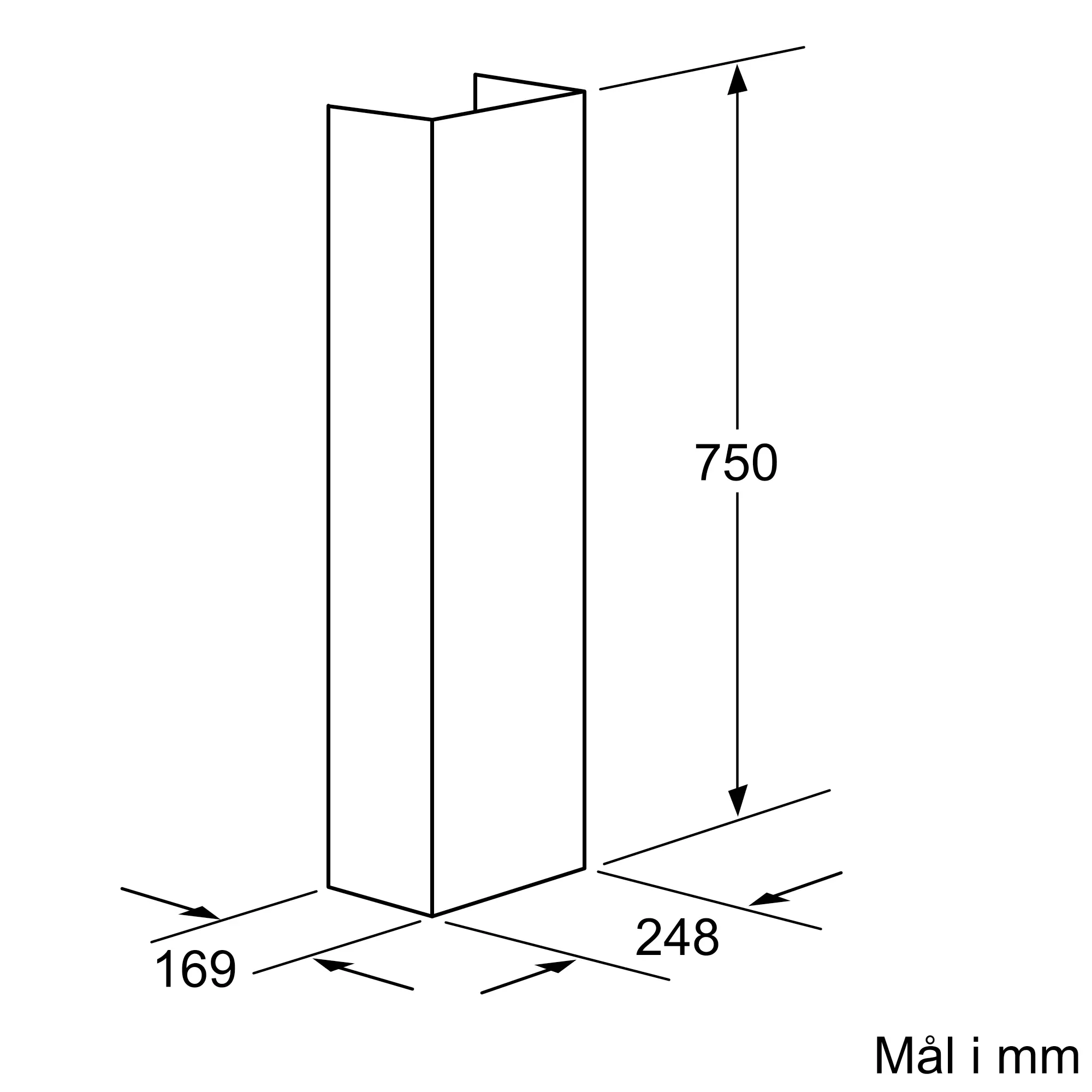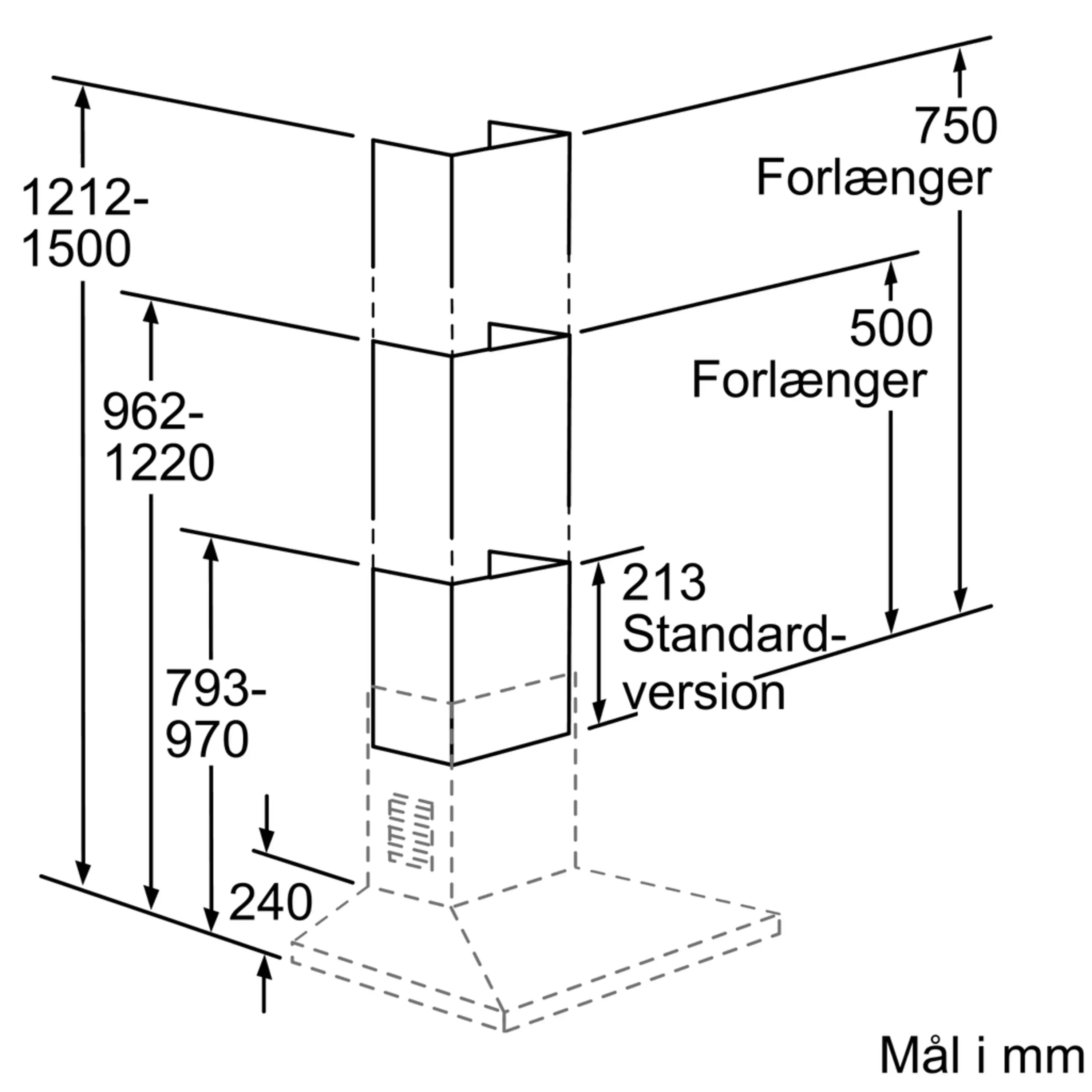 Emhætten kan maksimalt forlænges med 530 mm